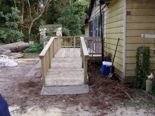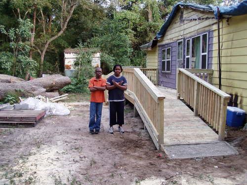 There was so much damage to the porch from the tree that it could not be rebuilt without much cost. They agreed to a new front porch with stairs and a ramp, which they did not have before.