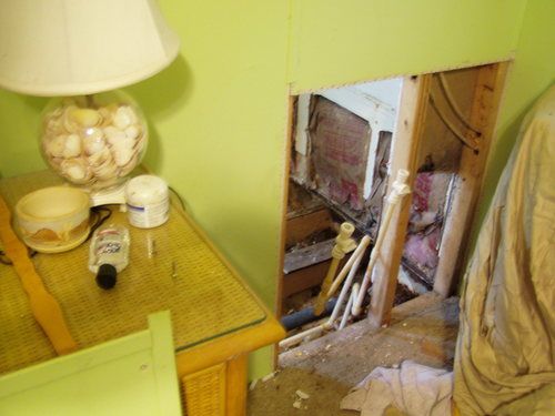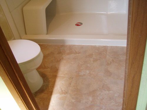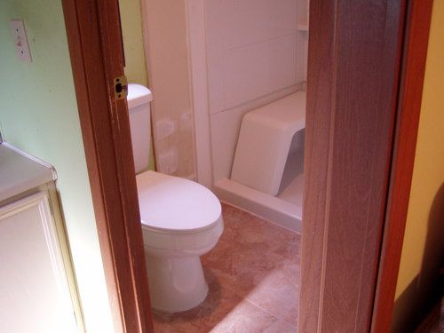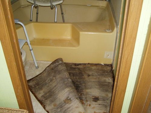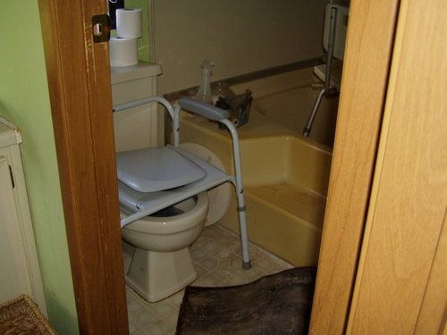 The bathroom in this home was in danger of falling through to the ground below due to rotten sub floors. UOR patched the floor, replaced the tub with a walk-in shower and put in a new toilet, plumbing lines, grab bars and paint. Completed 2015.​
